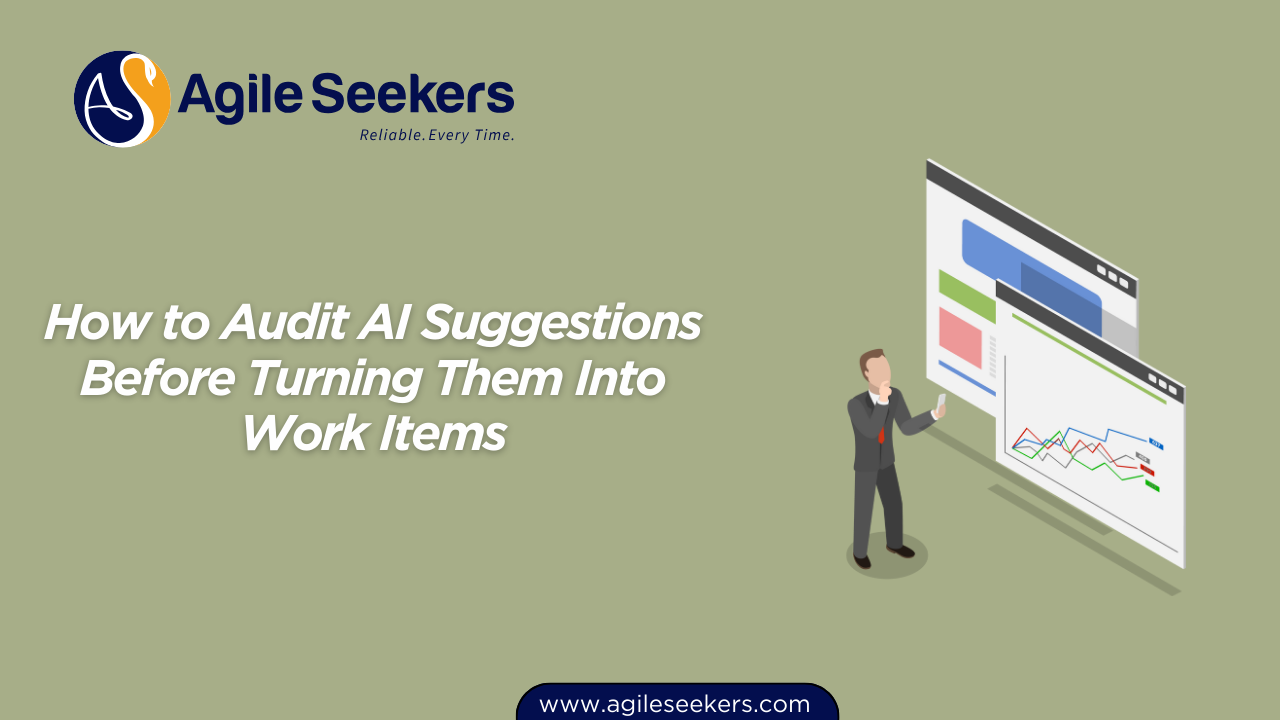 This guide explains how to audit AI suggestions before turning them into backlog items, features, or PI commitments. It focuses on practical steps you can apply inside Scrum teams, Agile Release Trains, and large enterprise environments using SAFe.