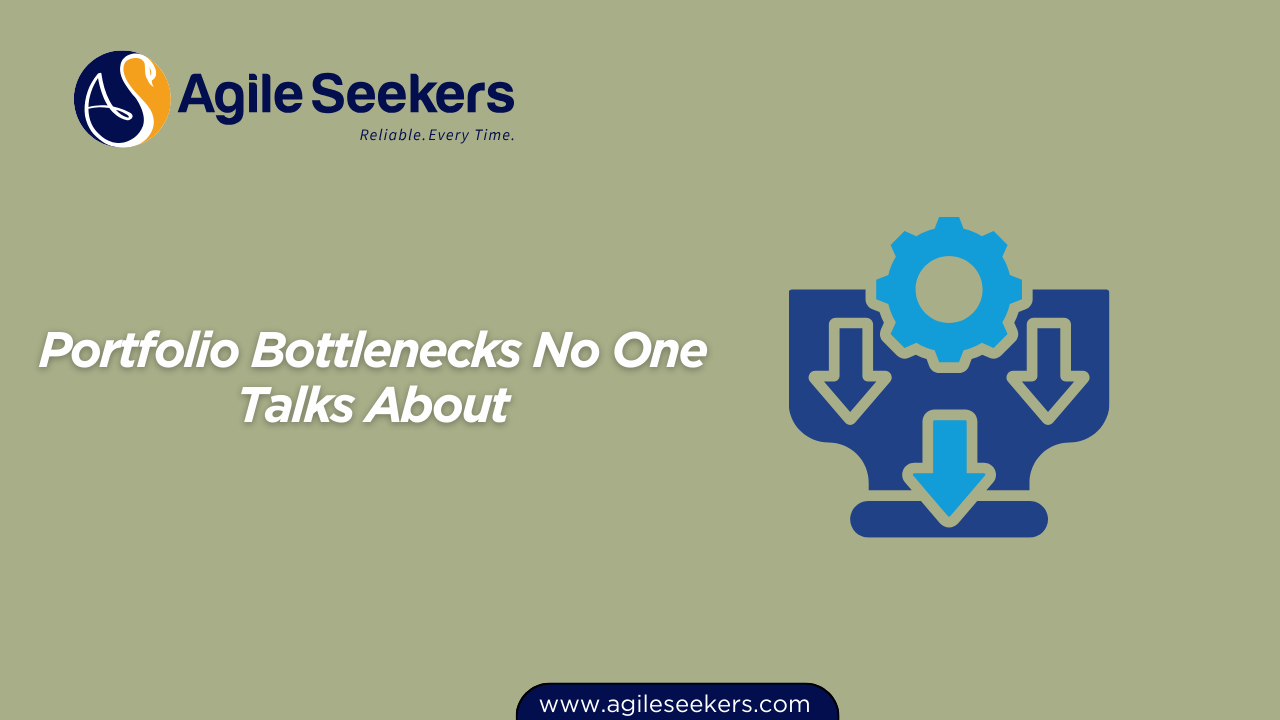 The root cause often sits above the team level. Portfolio bottlenecks quietly block progress long before work reaches development teams. These bottlenecks rarely show up on dashboards, yet they slow down decision making, delay delivery, and create hidden frustration across the organization.